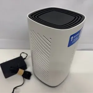 The All-Fi Hub Wireless Router by Dell is a high-speed router with a maximum LAN data rate of 1000 Mbps. It features dual-band connectivity and two Ethernet ports for wired connections. The easy setup QR code makes installation simple, and it is designed to fit a PC. With its wireless capabilities and sleek design, this router is perfect for home or office use, offering fast and reliable internet access.