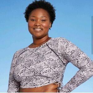 All In Motion Swim Side-Cinch Long Sleeve Rash Guard Gray and Speckled Black NWT