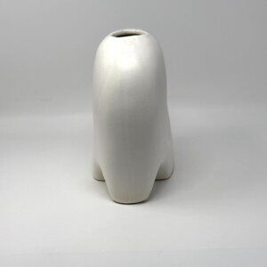 Beautiful asymmetric vase/art piece for tabletop display. Modern, matte white with ample space for flowers or just sitting looking lovely on its own. Hand crafted and substantial, will be a beautiful accent in any home.