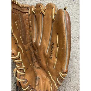 All-Pro Leather Baseball Glove Jr Pro JP-78 Right Handed Thrower RHT Korea. This is an All Pro baseball glove that is model JP-78. It is a junior pro baseball glove. It is worn on the left hand, which means it is a RHT glove. It says, “EZ catch pocket” inside. It also says, “flex action” inside. This glove says it was made in Korea. Overall, the glove has some spots of discoloration. The actual glove is not really that worn, though, as there are no holes or tears. The netting is not all the way complete near the thumb. Thanks!