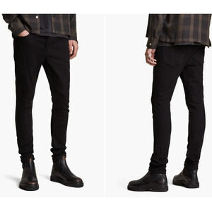 AllSAINTS Jeans Mens 32X29 Black Cigarette Skinny Button Fly
