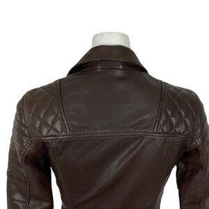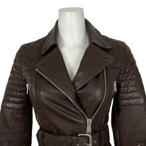 AllSaint Bryden Biker Leather Jacket 0 Brown Belted Moto Zipper Front Pockets