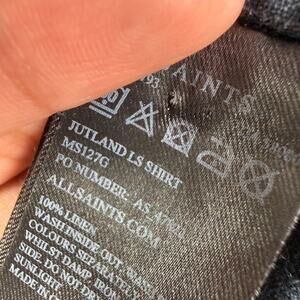 AllSaints 100% Linen Button Shirt Mens S Navy Blue Jutland Long Sleeve Camp