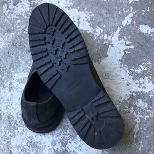 These black slip ons with zipper are not new but they’re not bad. Have fading around the toe and slight wear on the heel.