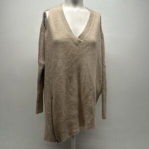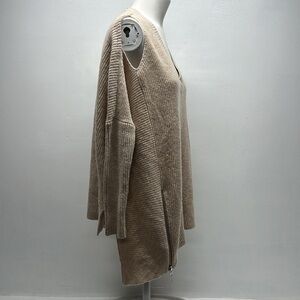 Keywords: all saints sweater, cold shoulder, zipper, oversized sweater, cream, tan, neutral color, wool blend, alpaca blend