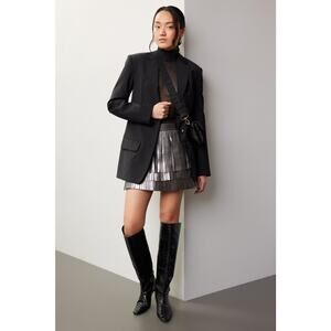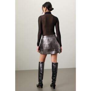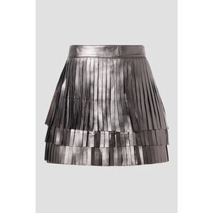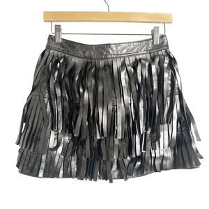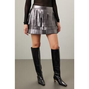 AllSaints Aisha Silver Metallic Fringe Leather Mini Skirt Size 2