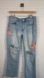 AllSaints Alana Embroidered Bird Distressed Boyfriend Jeans in Blue/Pink Size 26