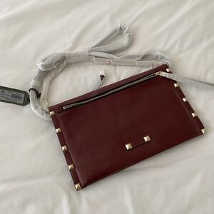 AllSaints Alex Crossbody Bag Burgundy with Gold Studs