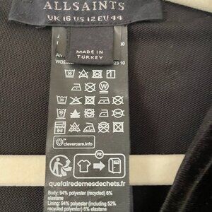AllSaints Anya Long Sleeve Velvet Mini Dress Size 12 NWT
