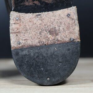 Outsole: Leather soles with rubber heel caps, wear evident (see photos)
