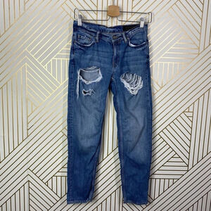 AllSaints AprilJeans Mid-Rise Distressed Ripped Medium Wash Blue Size US 24