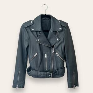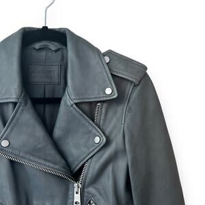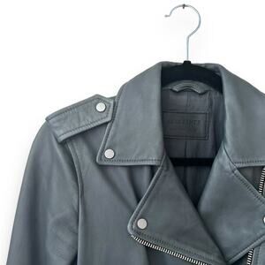 All Saints Balfern Belted Hem Leather Biker Jacket Grey 2 Women’s