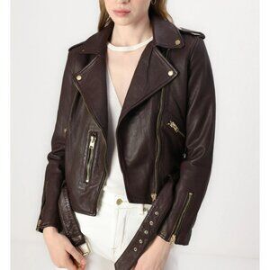 AllSaints Balfern Leather Biker Jacket Brown READ