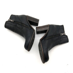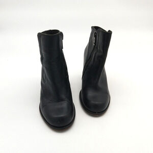 AllSaints Black Leather Ankle Boots Size 39 8 8.5 Stacked Heel Side Zip Moto