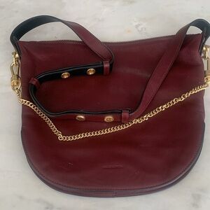 Chic and versatile! This AllSaints Blake Shoulder Bag in a rich red cranberry burgundy hue features pebbled leather and elegant gold chain hardware for a timeless look.
