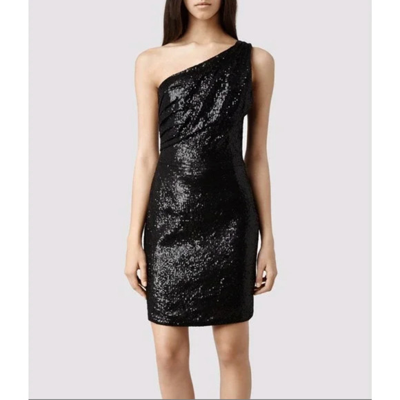 AllSaints Cassis One-Shoulder Sequin Cocktail Dress Black Size 2 NWT