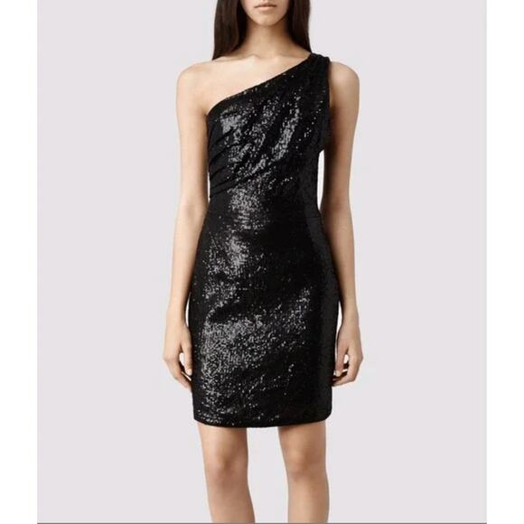 AllSaints Cassis One-Shoulder Sequin Cocktail Dress Black Size 4 NWT