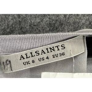 AllSaints Charlton Top Womens Size 4 Gray Sheer Mesh Geometric Embroidery Modern