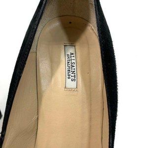 Style: AllSaints Black Cigarette Concealed 125 Suede Round Toe Heel Pumps.Heel Measures Approximately 5" ,Hidden Platform 1" *These Shoes Run Small .Marked as EUR 39 ,Will Fit US 8*