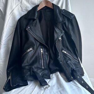 AllSaints Classic Black Leather Moto Biker Jacket | Size 8