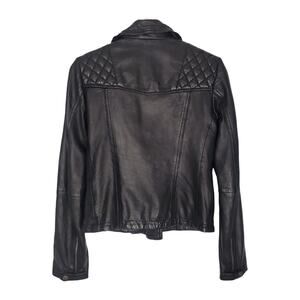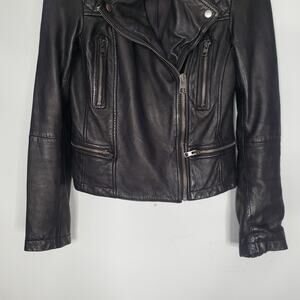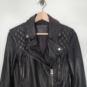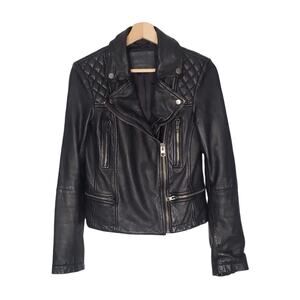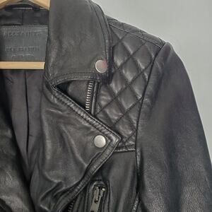 AllSaints Conroy Quilted Leather Zip Biker Jacket Black Asymmetric Size 4