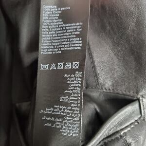 100% Sheep leather; body lining: 62% viscose/ 38% cotton; sleeve lining: 100% polyester