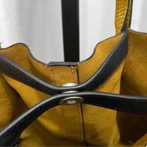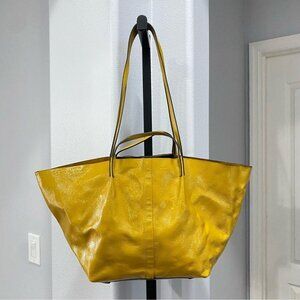 AllSaints Convertible Leather Shoulder Tote Bag Yellow Shiny No Pouch Mustard •