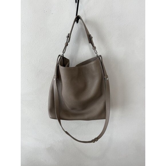 AllSaints Crossbody Taupe Gray Leather Crossbody Arm Tote Bag Purse All Saints