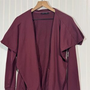 AllSaints Delia Sweat Cardigan Jacket Small Burgundy Waterfall Open Front Draped