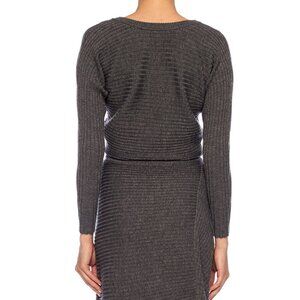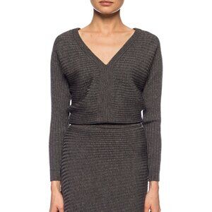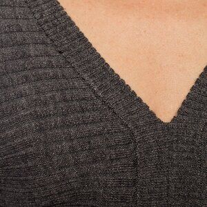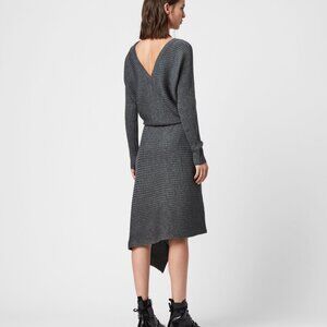 AllSaints Size X-Small Eva Ribbed Sweater Wool Dress Grey Metallic V Neck Long Sleeves