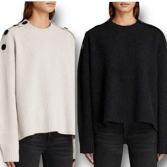 AllSaints Faye Crew Neck Wool & Cashmere Blend Ribbed Knit Jumper Sweater Sz XS