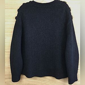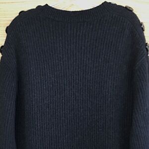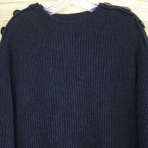 Keep warm in the Minimalist Style Faye Crew Neck Jumper Pullover sweater with decorative anchor buttons on shoulders. long barrel sleeves, ribbed knit in a wool and cashmere blend, relax fit In Charcoal color. Features: Black oversize buttons with anchors on the sleeve that can be unbuttoned to widen the neckline for an off-the-shoulder look. Looks new or worn once condition. Size. XS Please use my photos as part of description.Stock photos of similar item in different colors shown for illustration only.