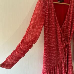 AllSaints Flores Heart Print Mini Wrap Dress Size M