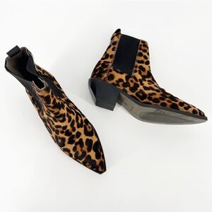 AllSaints Fox Pointed Toe Leather Chelsea Boots in Leopard Brown