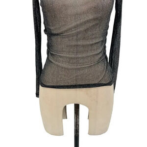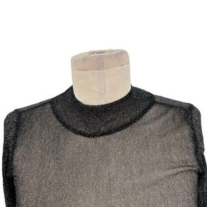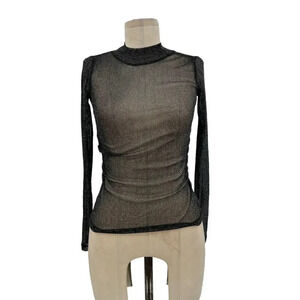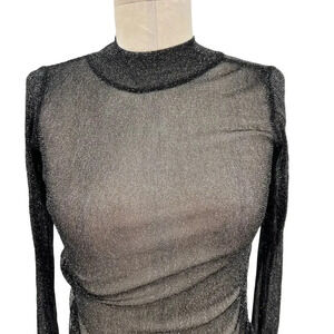 AllSaints Francesco Metallic T-Shirt Top Sheer Long Sleeve Black Silver Size 00