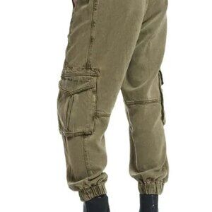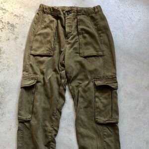 Cut from soft, nonstretch denim with a high-waist fit, these utilitarian-chic cargo joggers are a modern twist on a classic silhouette. Elastic cuffs taper the legs for a flattering shape, while cargo pockets add a casual, effortless edge.