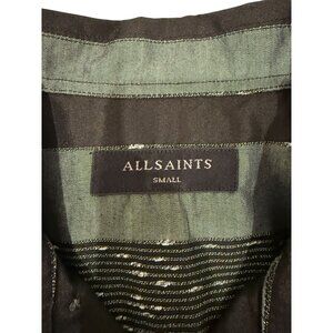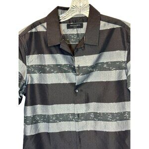 AllSaints Gabon Grey Black Stripe SS Shirt - Size S