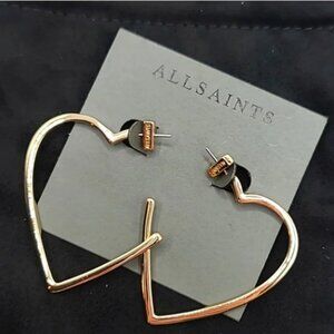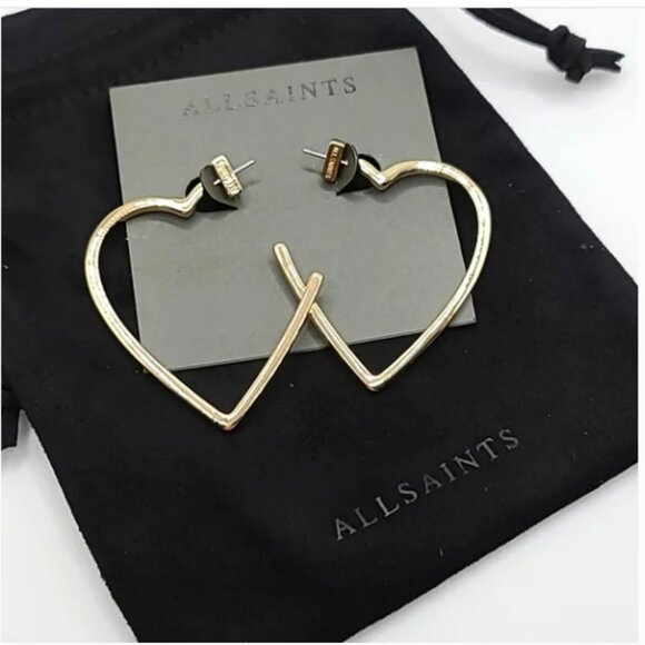 AllSaints Gold Femi Large Heart Hoop Earrings