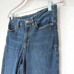 Features: Classic skinny fit, ankle length, zip fly with button closure, five-pocket styling, versatile blue wash perfect for everyday wear.