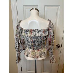 AllSaints Gray Paisley Crepe Off-The-Shoulder Makutu Top, Size 2 US | 6 UK NWT