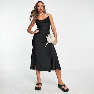 AllSaints Hadley Midi Slip Dress Size 12 Black Draped Satin 90s Minimalist