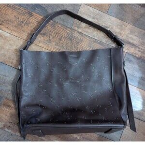 AllSaints Junai Leather Tote Crossbody Bag Brown Studded Studs Shoulder Hobo