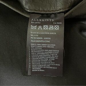 AllSaints Kahawa Leather Biker Jacket, Size Small.
