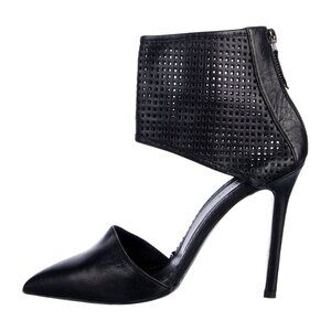 Pointed doe, straps & Zip Closures at shafts. Heel height 4.25 inches.