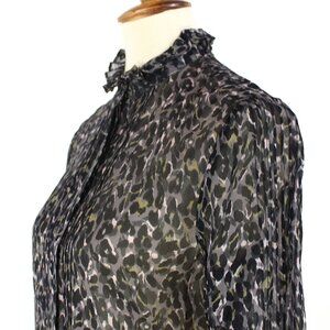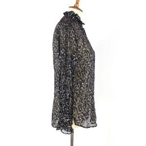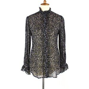 AllSaints Louise Waterleo Satin Semi Sheer Leopard Print Button Up Blouse Small