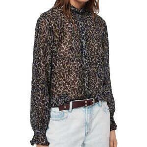 All Saints Louise Waterleo Satin Semi Sheer Leopard Print Button Up Blouse
