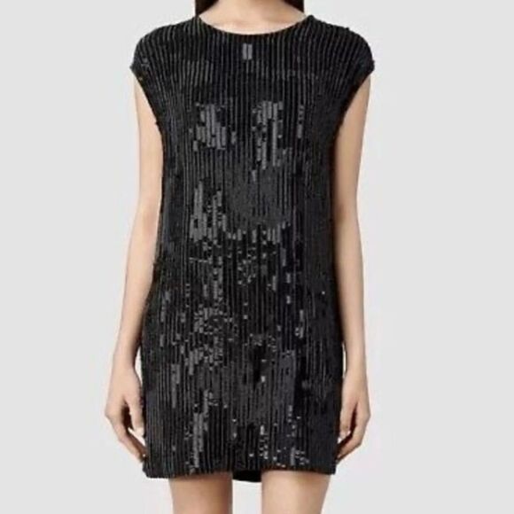 All Saints Mabli Hand Embellished Cocktail Dress Sz 0-6 Black Sequins