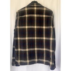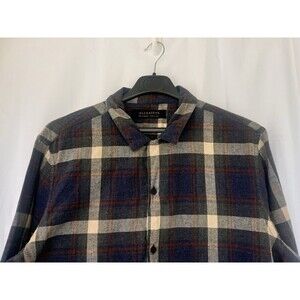 AllSaints Men’s 2XL Flannel Button-Up Shirt Navy Red Plaid Streetwear Grunge
