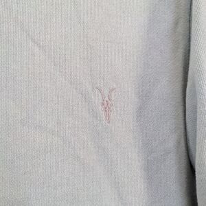 AllSaints Men's Drawstring Hoodie Medium Long Sleeve Blue Embroidered Cotton