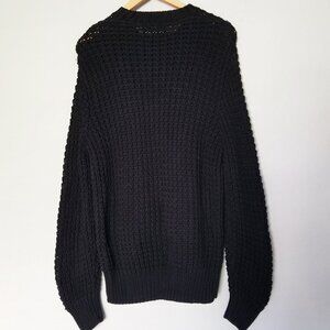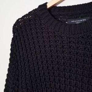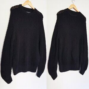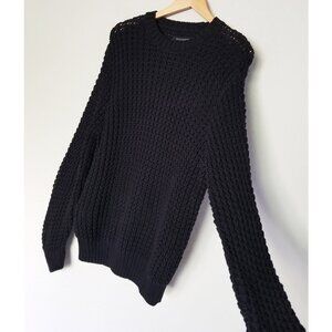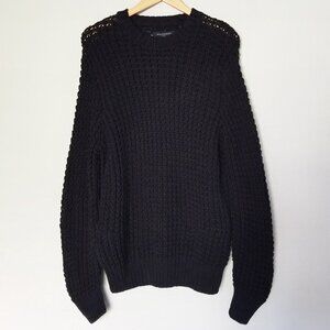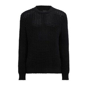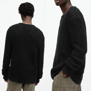 AllSaints Men's M Illund Waffle Stitch Crew Neck Sweater Organic Cotton Black